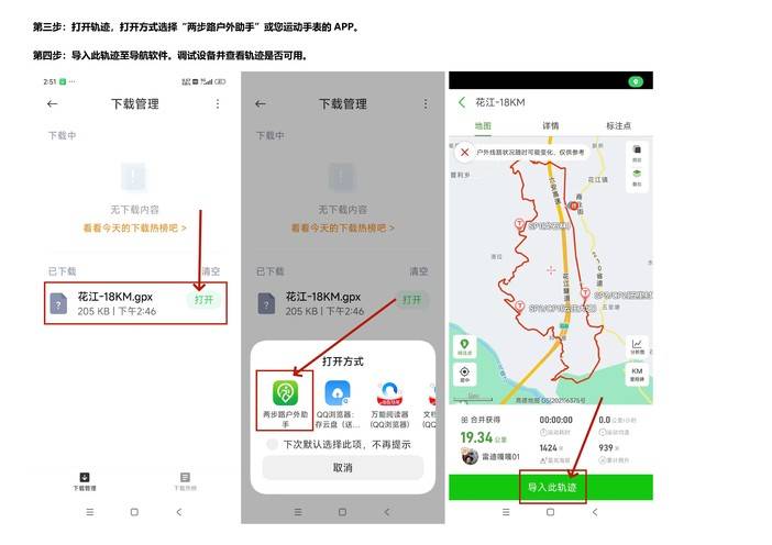 2.手机中使用两步路户外助手导航,请下载KML格式轨迹。