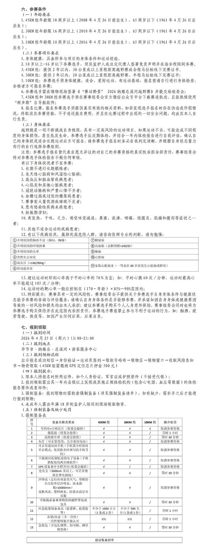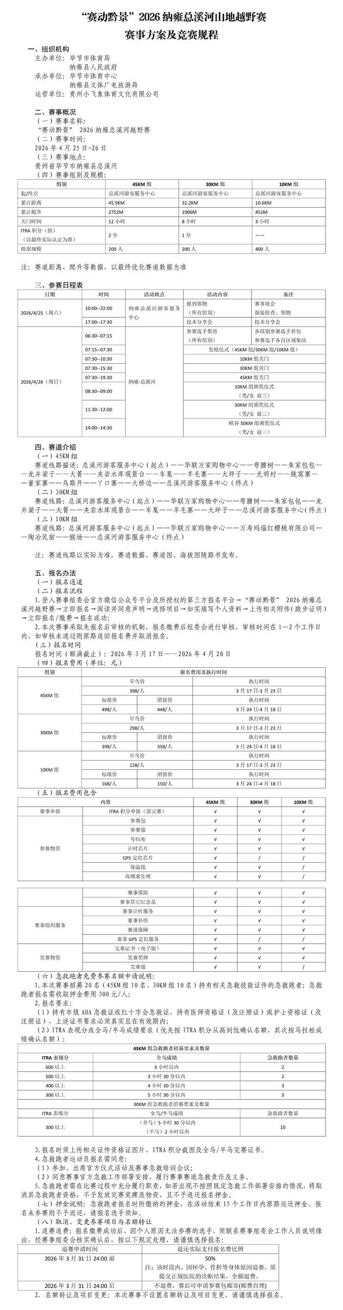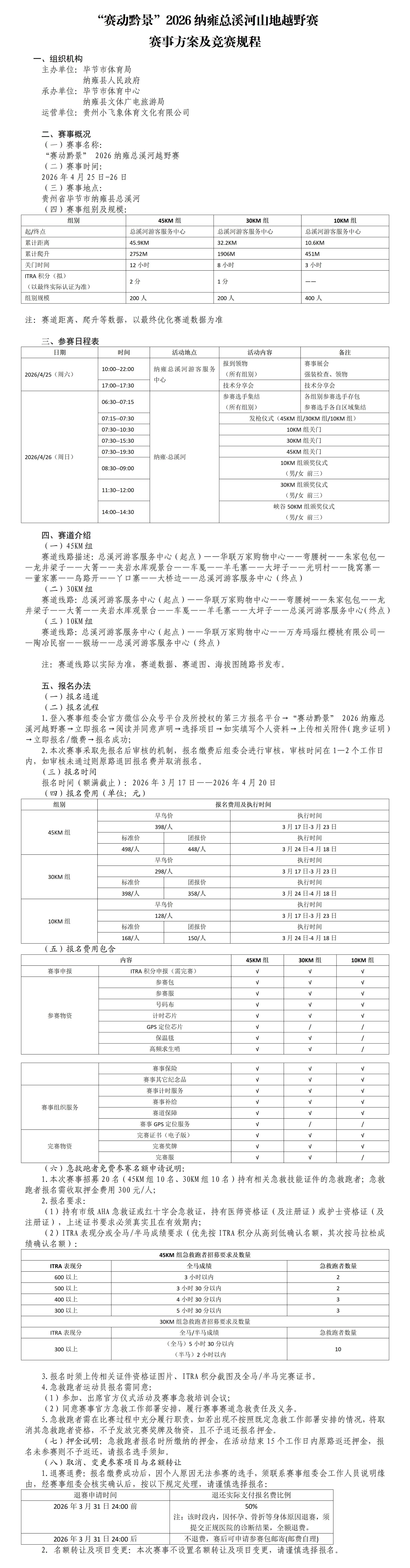 【竞赛规程】2026纳雍总溪河山地越野赛