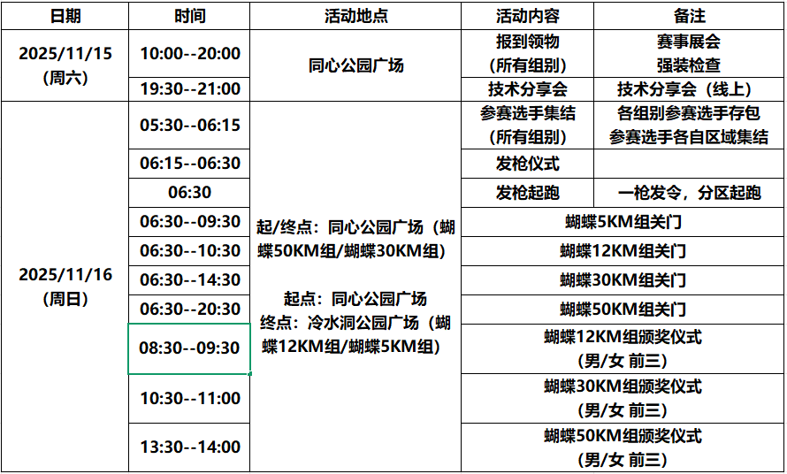 3.蝴蝶50KM组:提供2年以内,30公里或以上里程距离越野赛或全程马拉松线下完赛证书,不接受线上赛证书及跑步轨迹证明。