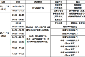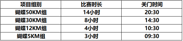 (一)蝴蝶50KM组、30KM组和12KM组男、女前3名按枪声计时成绩录取。详见下表: