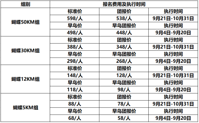 5.蝴蝶12KM、5KM组:参赛选手须身体健康,适合、爱好运动,有运动基础,报名前请自行进行身体检查,合格者方可报名参赛;