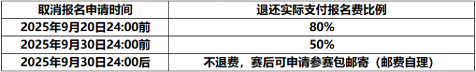 1.退费:报名缴费成功后,因个人原因无法参赛的选手在比赛开始前需要取消报名,须联系赛事组委会工作人员说明缘由,经赛事组委会核实确认后,按以下规定处理,请谨慎选择报名。