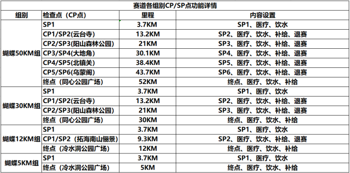 2.本次活动为蝴蝶50KM组、30KM组和12KM组参赛选手提供存取包服务,蝴蝶5KM组不提供存取包服务。