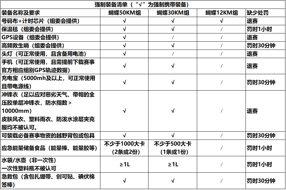 (2)领物强装检查:领物需进行强制装备检查,缺少或检查不合格,赛事组委会有权拒绝发放参赛包;
