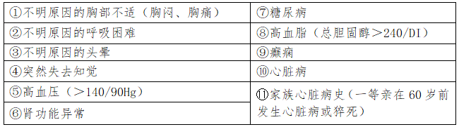 12.有以下疾病状况,属猝死高危险人群,请咨询医师专业的判断,请勿勉强: